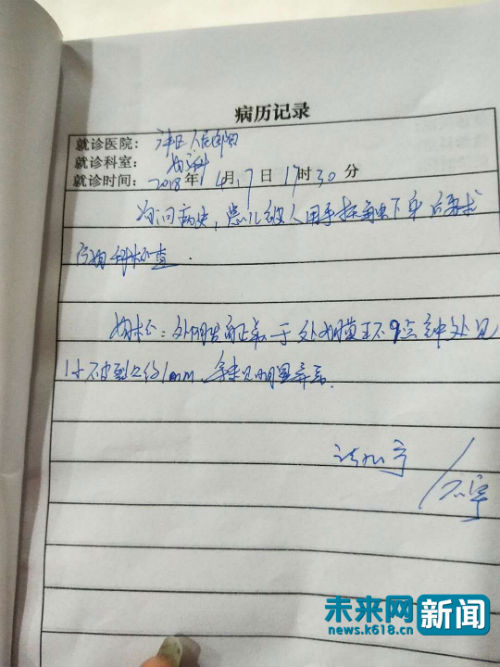 随后林爸爸向记者出具了法医的检查结果。