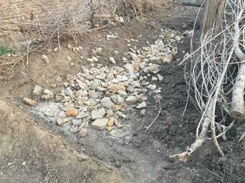 嫌疑人挖的粪坑里被扔进几十块大小不一的石头。