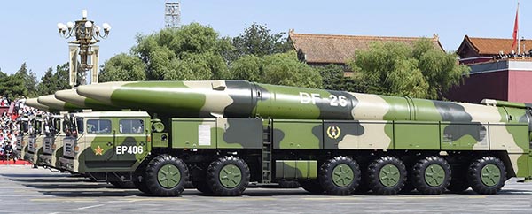 原标题:国防部:东风-26型导弹列装火箭军部队