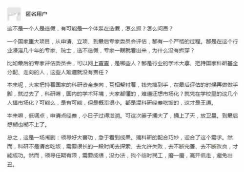 有一种声音指出,这种规模的造假都不是一个人能搞出来的,而很可能是一个体系在造假。