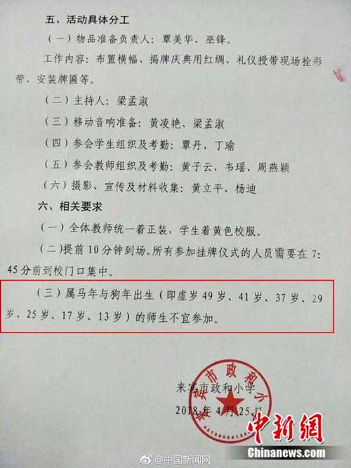 学校揭牌,不让属马和属狗的师生参加。听着像段子,却是真实发生的事情。