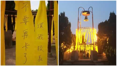 台大学生28日晚间在脸书上发帖,呼吁师生晚上10点在台大精神象征“傅钟”前集合,在校园内绑黄丝带,声援大学自治,拒绝政治力入侵校园。当天晚上,数十位师生在傅钟前集结,还有不少校外民众前往声援。