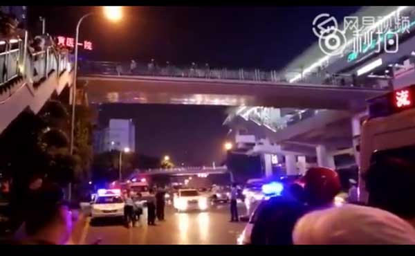 实拍男子天桥抛子致7岁儿子身亡现场视频