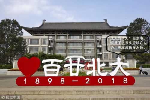 此次北大120周年庆的活动真是洋相百出,上图中四个白色大字中的“大”字放反。而所有懂得字义和发音的人,看到此牌会情不自禁这样读“白念北大”。这四个字摆放在北大图书馆正前方也算是意味深长了……