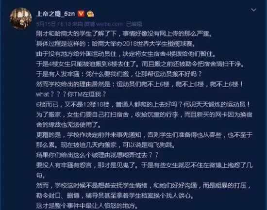 (副标题:让女生搬走寝室腾给外国男运动员?校方这样解释)