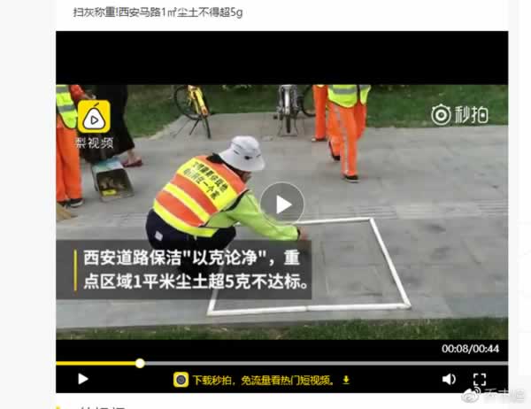 史上最精细考核!环卫工打扫,西安马路扫灰称重:1㎡尘土不得超5克。5月14日,陕西西安,环卫检查员在人行道上围出1平方米的方框,用毛刷扫灰并称重,重点区域1平方米尘土超5克则不达标,堪称“史上最精细考核”。有网友觉得很严苛,对此事褒贬不一。(一手video)