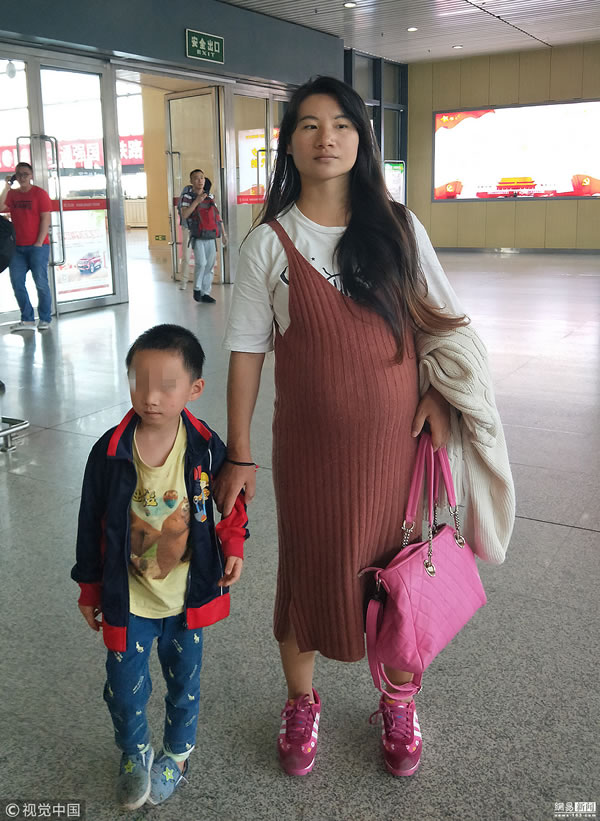 医生让修养一段时间才能做无痛人流。就在这期间,夏海波因为消化道出血被紧急送医院抢救室,住院一个多月。梁二玲一个人带着孩子在医院照顾夏海波,等到家里钱用光,夏海波出院,这一耽误,肚子里孩子已经快五个月。医生建议生下来。此刻的梁二玲有出于母爱,决定生下孩子。图为梁二玲大着肚子在夏海波老家门口,怀孕已经9个多月,预产期是5月30日。