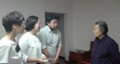 (图为董奶奶给暴走漫画联合创始人、CEO任剑等人讲故事,叮嘱知错就改就是好孩子)