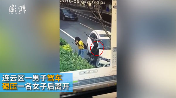 江苏连云港一男子驾车撞击碾压女子视频截图