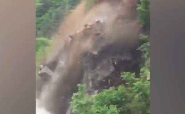 实拍吉林长白连降暴雨山体塌方现场视频