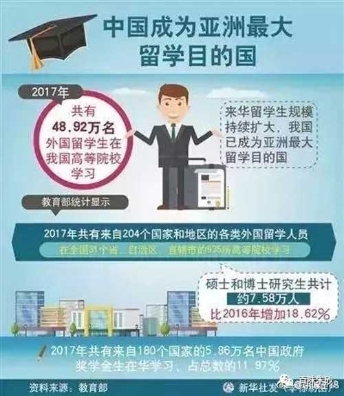 这图是教育部给出来的,拿出它来,老朱不是让人我看上面的数据,而是让你看右上角的那句话:“来华留学生规模持续扩大,我国已经成为亚洲最大的留学目的国”,很显然,教育部是将此当成政绩了,留学生多了,教育部觉得脸上很光彩,拿出来显摆。
