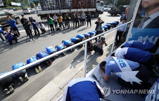 而当天在江原道春川市街头,多位共同民主党候选人磕头拉选票的活动,则受到了众多记者的围观。