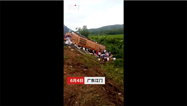 6月4日,广东江门一大巴在道路发生事故,现场一片狼藉,警铃大作。警方已到现场处置。记者从权威渠道获悉,此次事故没有造成人员死亡,事故起因正在调查。