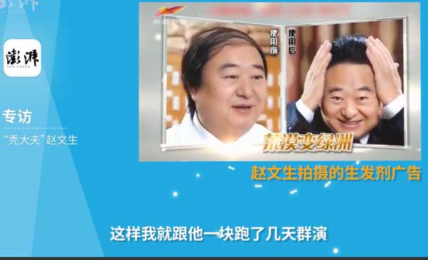 近日邦瑞特防脱育发产品频登电视广告,称秃大夫赵文生自创产品,另一则发根活力素广告中,他生于中医世家,精通中药。是真是假,澎湃新闻专访赵文生,还原真实“秃大夫”。