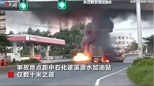 现场:广东遂溪两车相撞油罐车爆炸 离加油站仅数十米