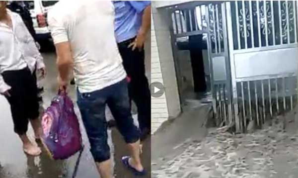 实拍湖南遭暴雨 2名小学生家门口被大水冲走