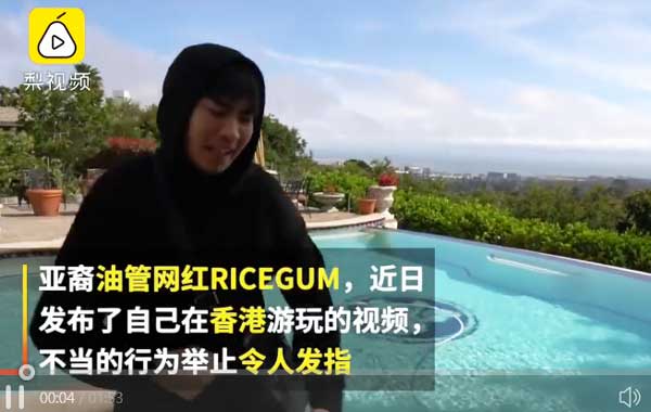 一位亚裔Youtuber网红RICEGUM(96年出生),近日到香港游玩时拍摄视频,视频中行为举止令人发指。