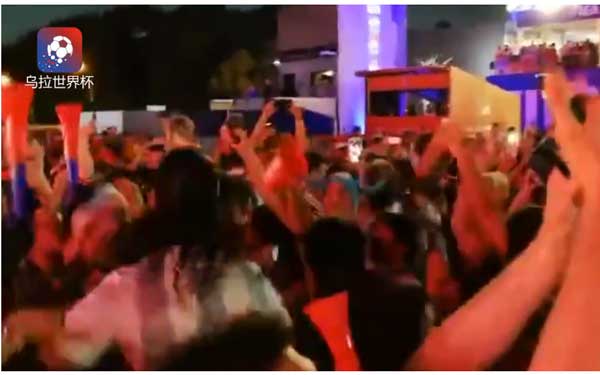 实拍阿根廷晋级球迷疯狂喊梅西现场视频
