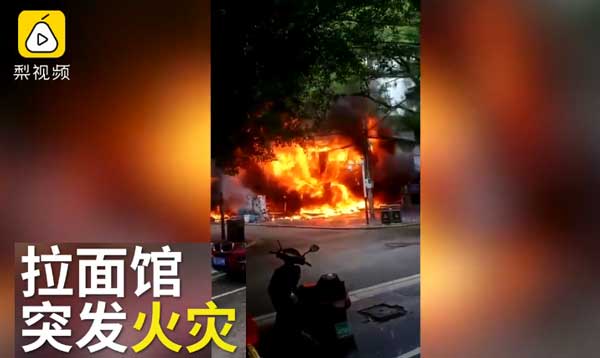 实拍桂林一拉面馆突发火灾 现场火光冲天