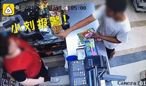 实拍实拍南京收银大姐吓懵持刀劫匪现场视频