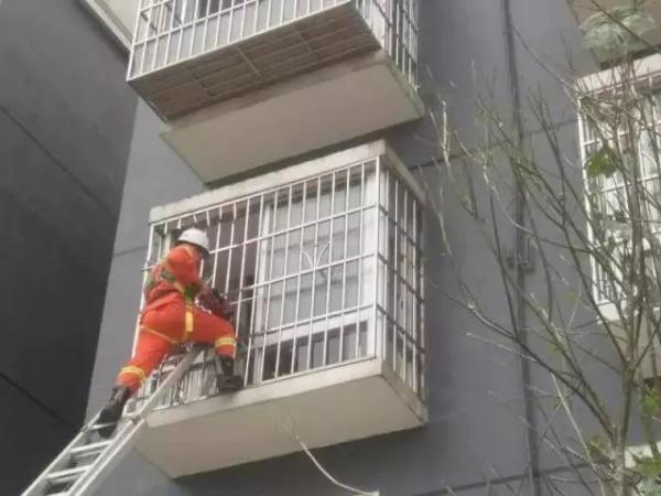 事发时,嫌疑人所在的房屋位于三楼,嫌疑人在客厅内。得知黄某的姐夫反锁躲在另一个房间里,罗城消防官兵使用拉梯登上他所在房间的窗口,与其进行交流。
