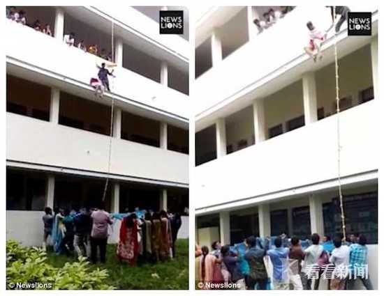 实拍印度女生逃生训练时不敢跳被教练从二楼推下身亡现场视频