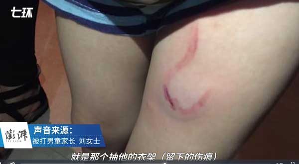 监拍孩童抢玩具父亲抱走孩子返回用衣架抽打对方现场视频截图