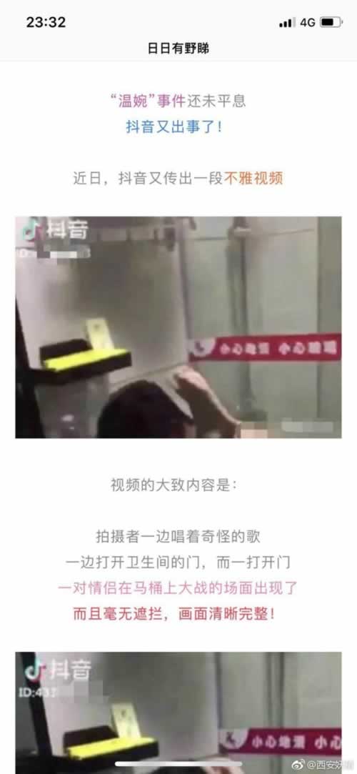 原标题:抖音又出大事!情侣在卫生间马桶上“大战”,画面清晰无下限!