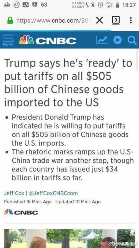 特朗普的言论表明,在取得中国的(关)税妥协以及知识产权的目标上,美国可能用出“极限”手段。特朗普称,“我不是为了政.治目的这样做,我这样做是因为这对我们美国是正确的事情。”