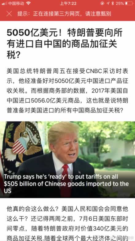 而如果特朗普再对另外2000亿美元的中国对美国出口商品加税,中国就再对美国454.5亿美元的出口商品加税。直到双方没有更多商品可以再加税为止。