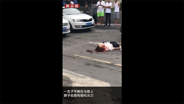 青岛男子闹市区持刀杀害前妻现场视频截图