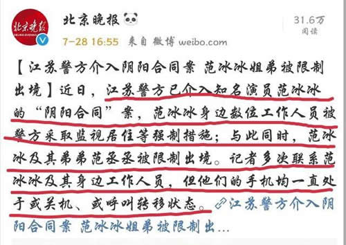 起初爆出范冰冰和他弟弟被边控的消息源于一个节目组,由于节目组有活动要在国外完成,当去办理出入境手续时却被告知范冰冰弟弟和范冰冰已被限制出境。