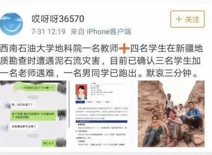 原标题:西南石油大学5名师生野外考察遭遇地质灾害 校方:4名师生遇难 遗体已找到
