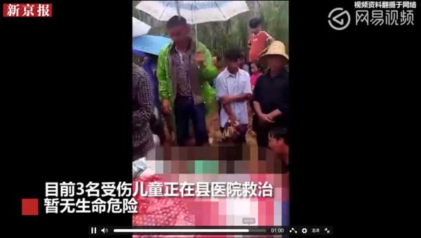 记者了解到,8月1日下午7名儿童到扭倮养殖场后山上捡菌子,雷电暴雨来临时,7名儿童一起到树下避雨,因雷击造成4名儿童当场死亡,3名儿童受伤。
