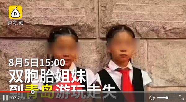 原标题:双胞胎姐妹青岛走失,遗体均已找到