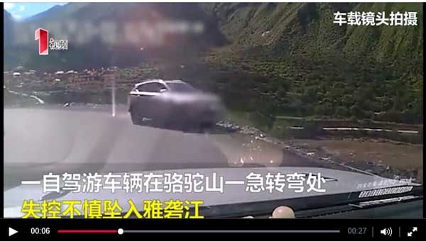 成都商报客户端8月14日消息,近日,一段时长31秒的视频在网上传播开来,视频中,一辆越野车朝着悬崖开去,最终坠落江中,而视频上的时间显示为2018年8月7日16点19分。
