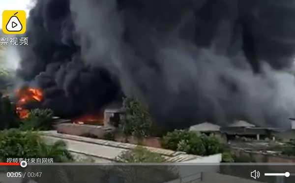 福建南安一工厂突发火灾 现场浓烟冲天如上演末日大片