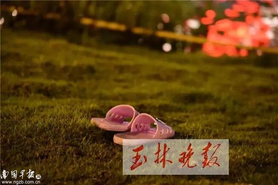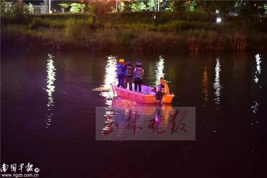 18日20时10分许,记者赶到现场。在飞虹桥北侧西端的草坪里,警方已用警戒带把江边警戒起来,禁止无关人员进入。靠近江边的草坪上,还摆着一双粉红色的拖鞋。20时40分,园博园工作人员驾驶一艘冲锋舟载着3名蓝天救援队人员来到江中。很快,他们就把尸体打捞上岸。