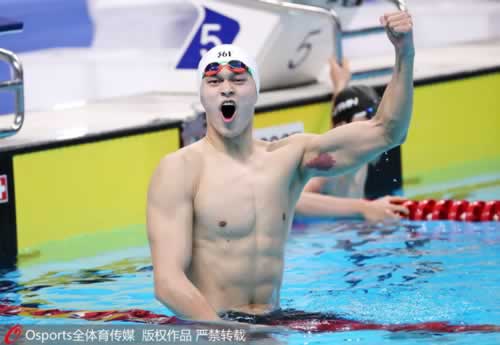 孙杨庆祝胜利。