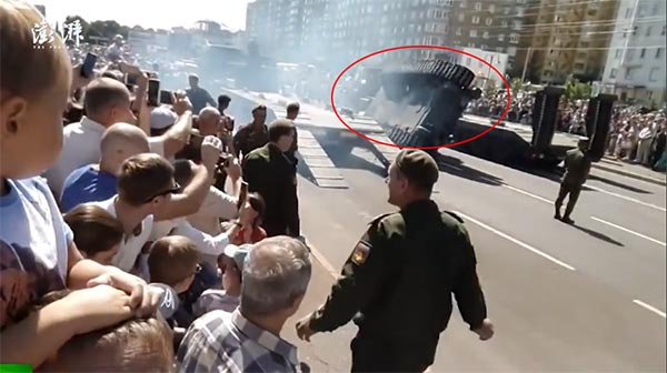 当地时间8月23日,俄罗斯一辆T-34坦克在阅兵式时不慎侧翻,所幸没有人因此受伤。当天,为纪念库尔斯克战役胜利75年,俄罗斯库尔斯克省举行了阅兵庆祝活动