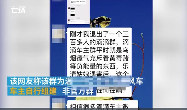 8月26日,浙江温州。女孩乘滴滴顺风车遇害事件发生后,一网友向澎湃新闻提供了某顺风车车主自建群的聊天截图,内容十分不堪,同时群内有人发“洗白账户”等业务。