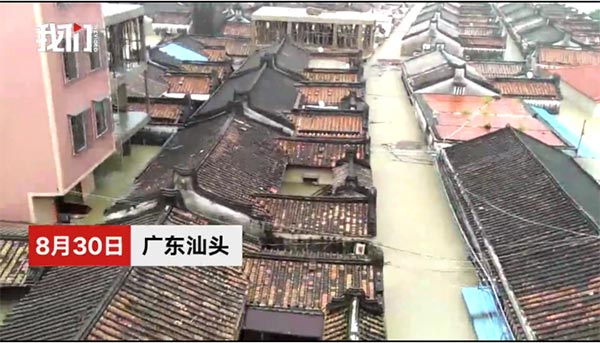8月30日,广东汕头,受连续降雨影响,潮南、潮阳区等部分地方出现严重积水,居民提供视频显示,部分地区积水已经临近屋顶,陈店镇的市民表示积水已经要腰,一市民家中一楼也淹至膝盖。据汕头市应急办,因暴雨多路段照明实施停电,截至18时,受灾人口达44.9万人转移群众3.48万人,抗洪抢险救援工作正在进行中。