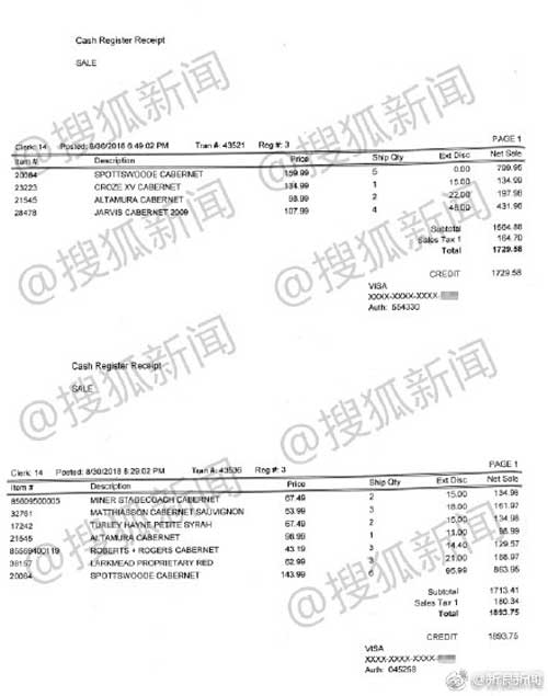 据悉这一桌喝了红酒共计32瓶,另外我们得到了一份明市警方进行调查时获取的酒水单和晚餐账单以印证相关说法。
