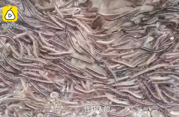实拍山东淄博怪虫进村如流水侵袭现场视频
