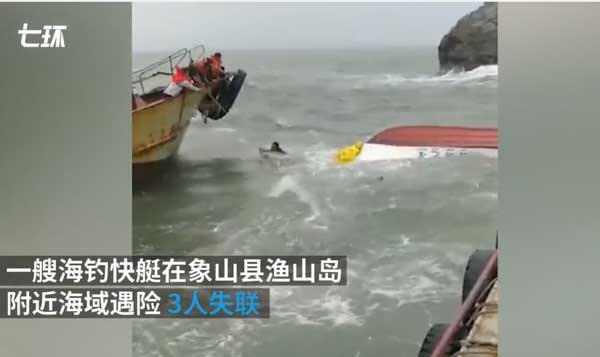 实拍宁波渔山岛一海钓快艇遇险 致3人失联