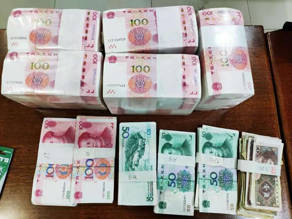 民警对包内的现金物品逐一清点,发现包内现金多达50多万。
