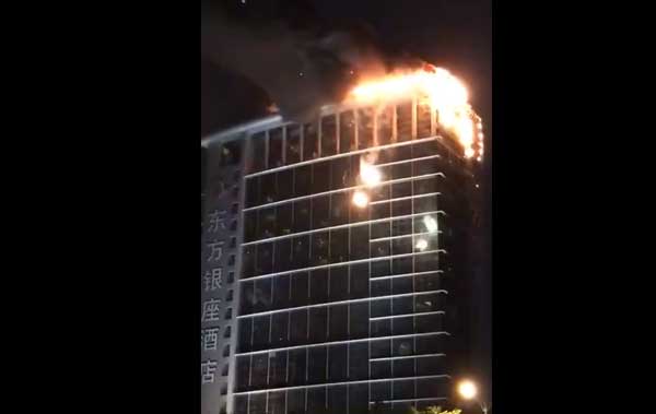 实拍深圳东方银座酒店楼顶突发火灾现场视频