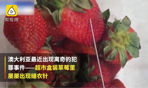 实拍草莓里吃出缝衣针澳警方悬赏49万元缉凶现场视频
