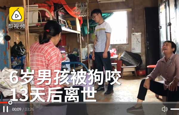 实拍湖州6岁男孩被狗咬13天后狂犬病发作去世现场视频