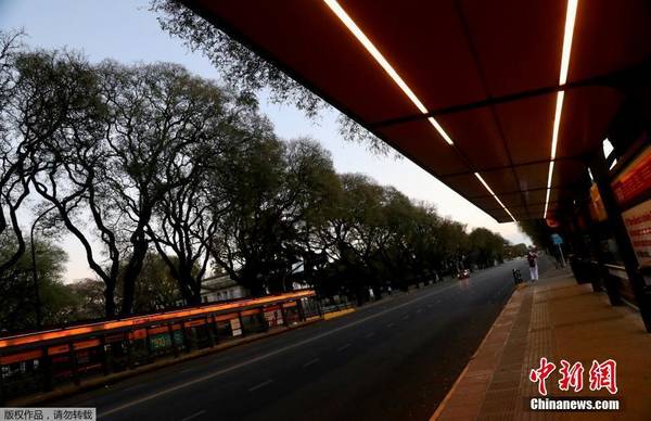 空荡荡的公交车站。罢工除了导致市内公交停摆,还造成布宜诺斯艾利斯的机场关闭,预计将会有超过6万人的航空出行受到影响。
